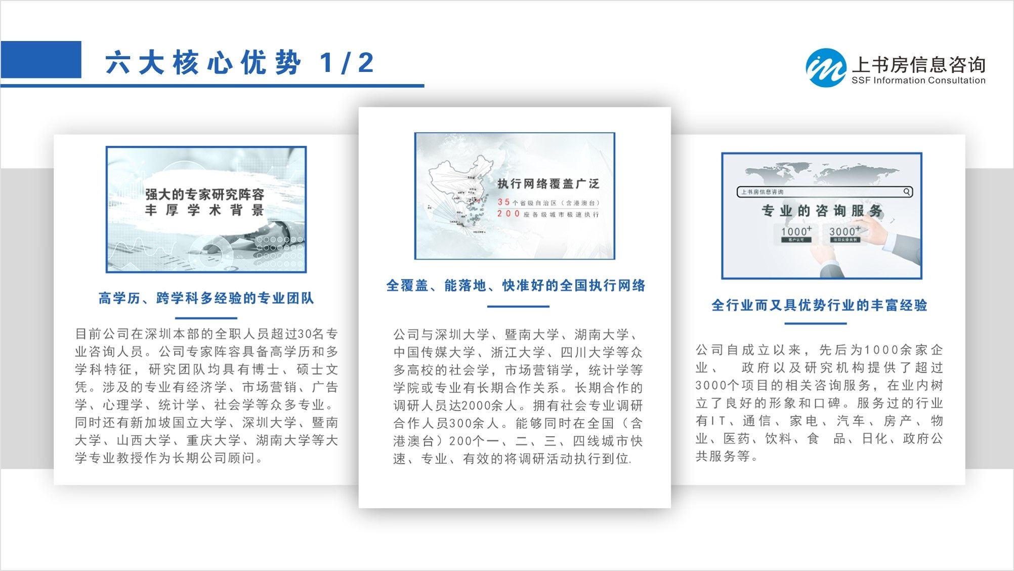 上書房信息咨詢經(jīng)過十多年項目積累與不斷學習探索,采集各類調(diào)研信息超過千萬份,整理撰寫超過一萬份的各種專業(yè)調(diào)研報告,調(diào)研對象涉及到各行各業(yè),調(diào)研人群覆蓋到全國31個省市行政區(qū),公司自建專業(yè)在線調(diào)研系統(tǒng)網(wǎng)站,將進一步整合各類資源與數(shù)據(jù),形成更大的專業(yè)調(diào)研數(shù)據(jù)庫。
