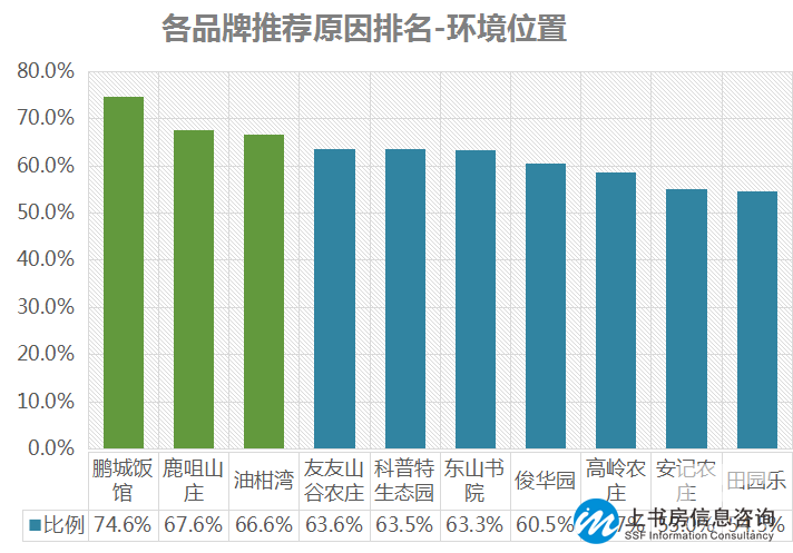 環(huán)境位置推薦率排名前三依次為:鵬城飯館、鹿咀山莊、油柑灣;