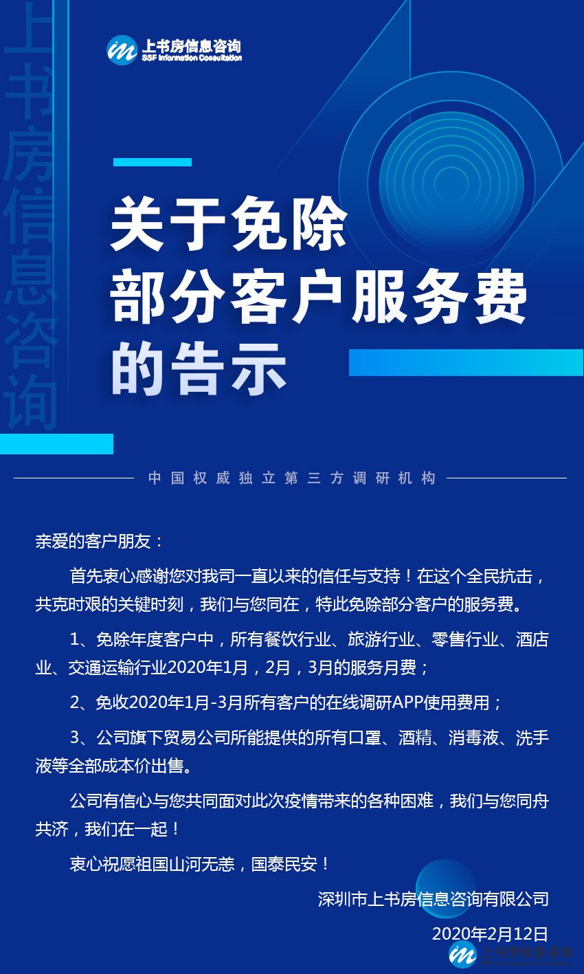上書房信息咨詢關(guān)于免除部分客戶服務費的告示