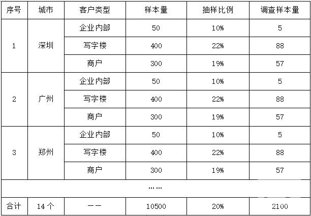 上書房信息咨詢針對采取分層抽樣法,即先將總體(集團)分成若干個子總體(14個城市項目),然后在各個子總體(14個城市項目)中按照抽樣比例抽取適當數(shù)量的樣本項目的一種隨機抽樣法。層內(nèi)采用PPS抽樣,假設(shè)計劃調(diào)查2000個左右的樣本,則抽樣操作如下: