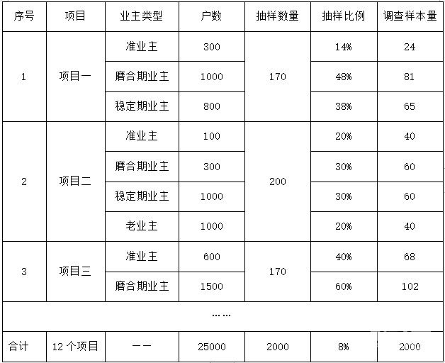 上書房咨詢根據(jù)物業(yè)公司的各項目業(yè)主入住時長、總樣本量因素進行分析,按照客戶預(yù)期計劃調(diào)查樣本量進行抽樣。