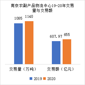 南京農(nóng)副產(chǎn)品物流中心交易品種超過40萬種,是全國經(jīng)營規(guī)模較大的農(nóng)副產(chǎn)品交易平臺之一。2019年實現(xiàn)交易額607.97億元,交易量1085萬噸。同時,建設(shè)了13萬平方米配套服務(wù)區(qū)及國家物流場站,提供一站式配套及物流服務(wù)。