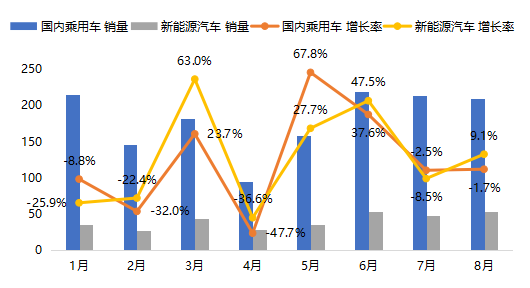 2022年1-8月國內(nèi)乘用車銷售情況