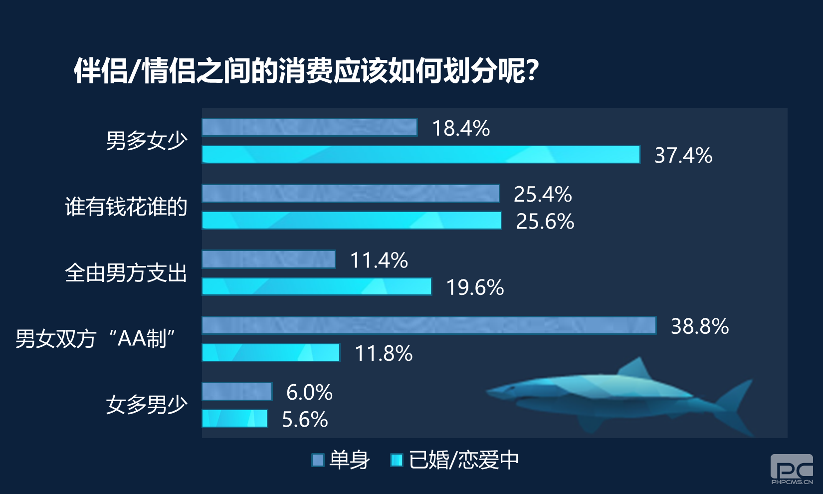 “談錢(qián)傷感情,談感情傷錢(qián)”,消費(fèi)劃分不清晰是部分伴侶/情侶發(fā)生爭(zhēng)執(zhí)的原因之一,已婚或者已戀愛(ài)的人士中,男士依然是情感關(guān)系中付出最多金錢(qián)的一方,但是單身小可愛(ài)們認(rèn)為男女之間最好的消費(fèi)劃分是“AA制”,而且提出這種劃分方式的女性有六成,這部分女性認(rèn)為經(jīng)濟(jì)獨(dú)立能讓自己在這段關(guān)系中受到對(duì)方的尊重。