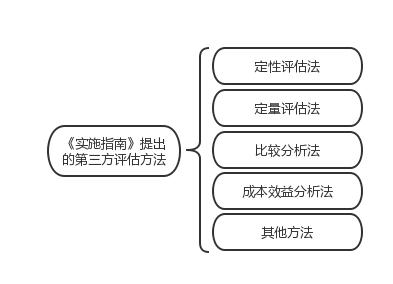 《實(shí)施指南》規(guī)定的評(píng)估方法有定性評(píng)估、定量評(píng)估、比較分析、成本效益分析及其他方法,如下圖。其中定性評(píng)估是最重要的評(píng)估方法,只有對(duì)政策措施進(jìn)行定性分析之后,才能從整體上評(píng)估好某一政策措施。另外,綜合上述評(píng)估方法進(jìn)行綜合評(píng)估,單獨(dú)采取某一種方法得出的評(píng)估結(jié)果不具有全面性、完整性,每種評(píng)估方法各自有一定的缺陷,第三方評(píng)估機(jī)構(gòu)在開(kāi)展具體評(píng)估工作時(shí)多種評(píng)估方法結(jié)合使用,各種評(píng)估方法相互彌補(bǔ),共同結(jié)合成一套相對(duì)完整的、科學(xué)的評(píng)估方法體系。