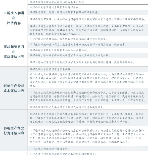 根據(jù)《公平競(jìng)爭(zhēng)審查第三方評(píng)估實(shí)施指南》文件內(nèi)容來(lái)看,需要進(jìn)行第三方評(píng)估的內(nèi)容主要是政策措施,包括已出臺(tái)和擬出臺(tái)的政策措施,尤其是重要社會(huì)影響、涉及面廣的。具體的評(píng)估內(nèi)容如下:
