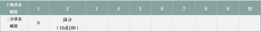 李克特等距量表主要有四類:李克特3級量表、李克特5級量表、李克特7級量表和李克特10級量表,量表賦值沒有限制,只需確保量表答案是等距水平即可。3級量表一般賦值為0、50%滿分與滿分(滿分數(shù)值依不同問卷而不同);5級量表賦值有1-5分、“0、25%滿分、50%滿分、75%滿分和滿分”;7級量表的賦值則主要為1-7分。10級量表的賦值有1-10分或10-100分。