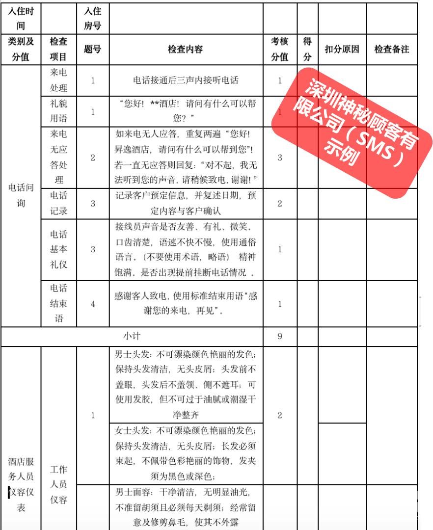 通過神秘顧客暗訪,了解其中存在的問題,并加以改進(jìn),達(dá)到提升酒店服務(wù)質(zhì)量的目標(biāo);通過感受和觀察酒店軟硬件服務(wù),并與服務(wù)標(biāo)準(zhǔn)形成對比,進(jìn)而為服務(wù)的檢驗(yàn)和改進(jìn)提供參考;同時(shí)神秘顧客的存在使得酒店服務(wù)人員在主觀意識(shí)上對服務(wù)的重視,可以保持較高的優(yōu)質(zhì)服務(wù)。