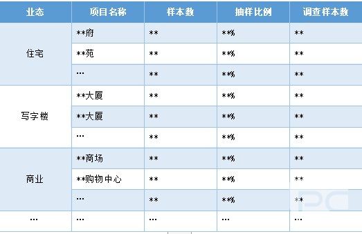 調(diào)查范圍覆蓋管理的所有項目,調(diào)查時間為1-2個月。通過不同業(yè)態(tài)劃分項目分類、調(diào)查內(nèi)容。
