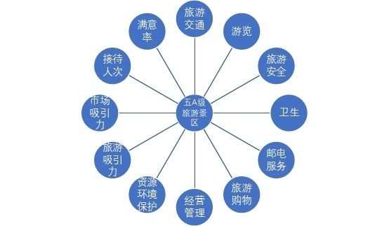五A級旅游景區(qū)質(zhì)量等級劃分標準有以下12個模塊:旅游交通、游覽、旅游安全、衛(wèi)生、郵電服務(wù)、旅游購物、經(jīng)營管理、資源和環(huán)境的保護、旅游資源吸引力、 市場吸引力、年接待海內(nèi)外旅游者 60 萬人次以上,其中海外旅游者 5 萬人次以上以及游客抽樣調(diào)查滿意率很高。四A級旅游景區(qū)的考察模塊相同,只不過標準較五A級稍低了一些。