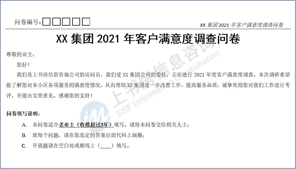 【背景部分】物業(yè)公司可以根據調查方式在問卷中增加或刪減該部分,如采用電話調查則可以省略該內容,網絡問卷、入戶訪問等可以保留,具體調查實際情況進行適當刪減。參考如下: