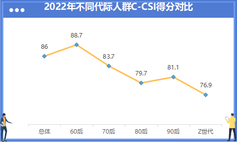 現代的質量管理已發(fā)展到“以顧客為關注焦點”的階段,了解顧客需求,滿足顧客期望,使顧客滿意,是企業(yè)在激烈的市場競爭中的立足之本。從2022年中國顧客滿意度指數C-CSI研究成果來看,不同代際人群的滿意度具有顯著差異,隨著年齡的降低消費者的滿意度降低。尤其是Z世代,C-CSI得分低于全行業(yè)總體水平2.8分。從這個角度來看,工業(yè)企業(yè)現在或者說是未來客戶的評判標準越來越嚴苛。
