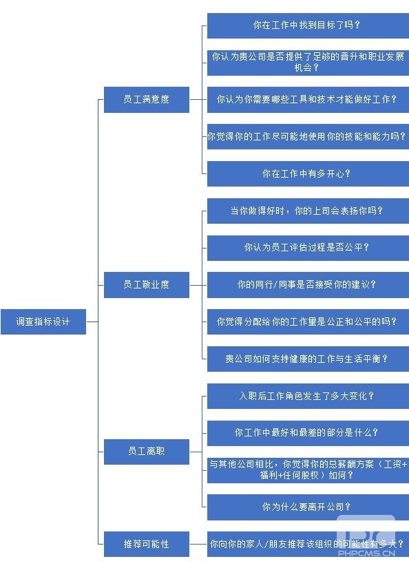 通過建立員工滿意度問卷調(diào)查平臺,定期收集員工需求和偏好情況,根據(jù)員工反饋的數(shù)據(jù)進行分析以確定企業(yè)管理問題和改進點。借助員工滿意度調(diào)查反映出的員工對公司不同維度的評價。同時值得注意的是,通過了解員工心聲之后需對其中反映的問題作出反饋和回應(yīng)。員工滿意度調(diào)查指標(biāo)使用十級量表的封閉式問題會產(chǎn)生更快、更直接的見解,它還有助于獲得可衡量和定量的數(shù)據(jù),針對不同類型的員工設(shè)置不同的調(diào)查內(nèi)容。以下員工調(diào)查問題示例: