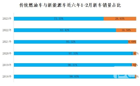 另外,自2018年以來(lái)國(guó)內(nèi)新能源車銷量占比逐步提升,2022年和2023年的增長(zhǎng)最大。隨著新能源汽車技術(shù)發(fā)展成熟,越來(lái)越多的新能源汽車的入場(chǎng),讓消費(fèi)者擁有更多選擇和比較的空間,同時(shí)對(duì)于新能源產(chǎn)品的接受度越來(lái)越高,而傳統(tǒng)燃油車市場(chǎng)則逐年下降。